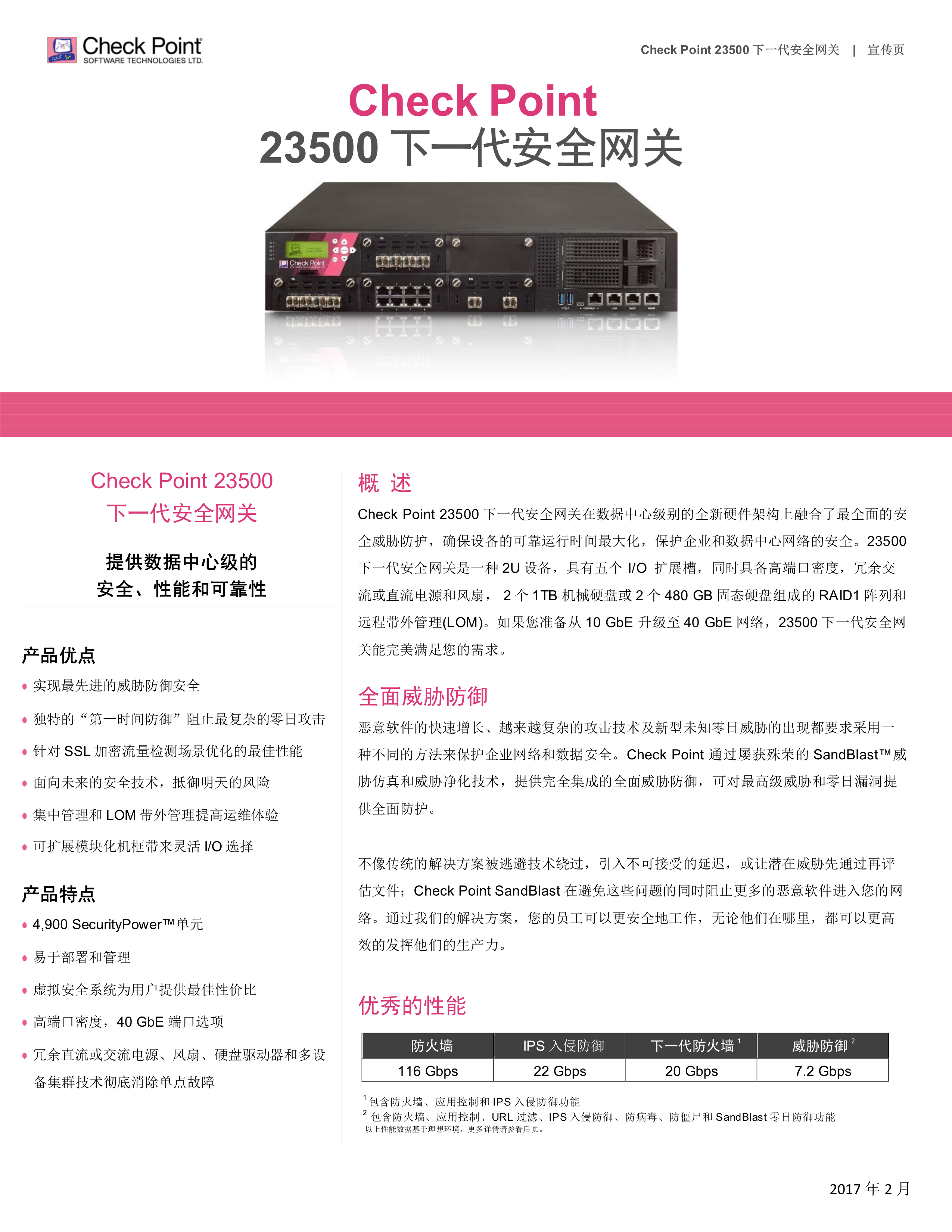 Check Point 23500下一代安全網(wǎng)關(guān)在數(shù)據(jù)中心級別的全新硬件架構(gòu)上融合了最全面的安全威脅防護(hù),確保設(shè)備的可靠運行時間最大化,保護(hù)企業(yè)和數(shù)據(jù)中心網(wǎng)絡(luò)的安全。23500下一代安全網(wǎng)關(guān)是一種2U設(shè)備,具有五個 I/O 擴(kuò)展槽,同時具備高端口密度,冗余交流或直流電源和風(fēng)扇, 2個1TB機械硬盤或2個480 GB固態(tài)硬盤組成的RAID1陣列和遠(yuǎn)程帶外管理(LOM)。如果您準(zhǔn)備從10 GbE 升級至40 GbE網(wǎng)絡(luò),23500下一代安全網(wǎng)關(guān)能完美滿足您的需求。